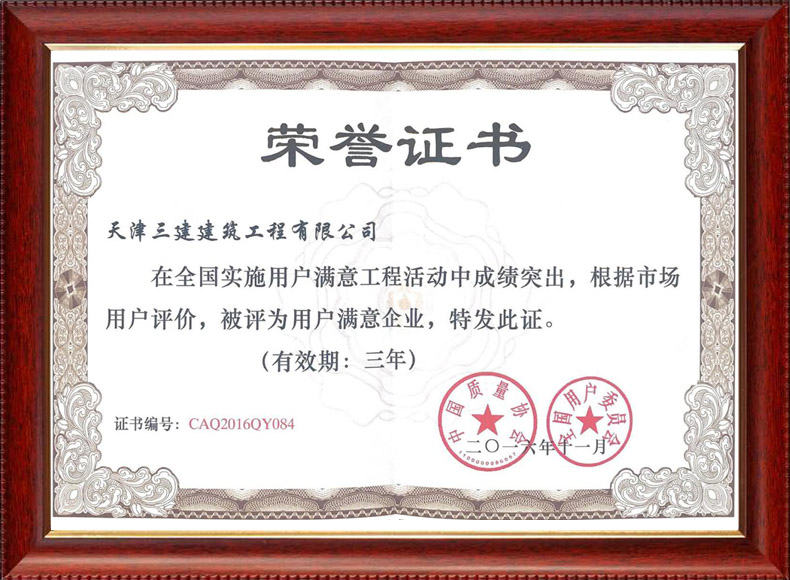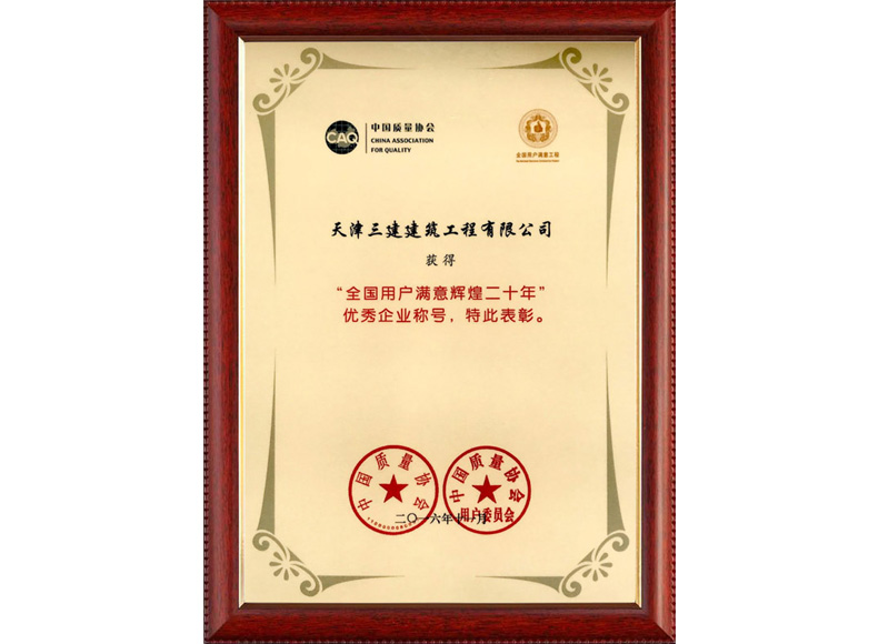 2016 全國用戶滿意輝煌20年優(yōu)秀企業(yè)稱號