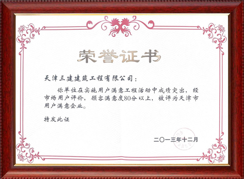 2013 天津市用戶滿意企業(yè)稱號