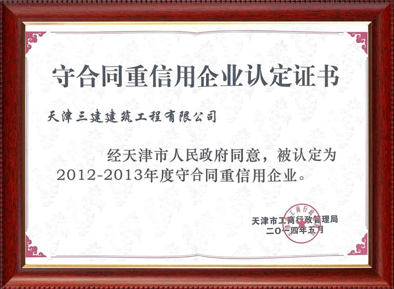 12-13年度天津守合同重信用企業(yè)認定證書