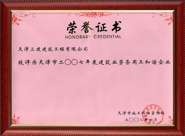 2007 天津市建筑勞務用工和諧企業(yè)