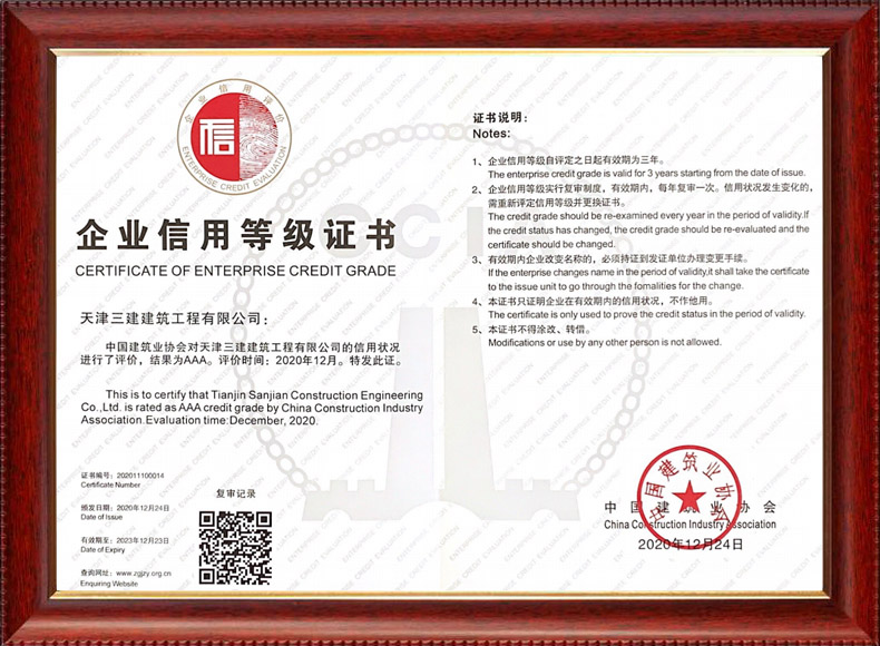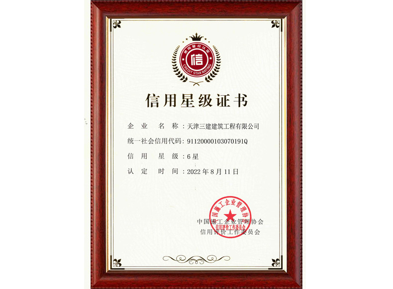 2023企業(yè)信用等級證書(中國建筑業(yè)協(xié)會)