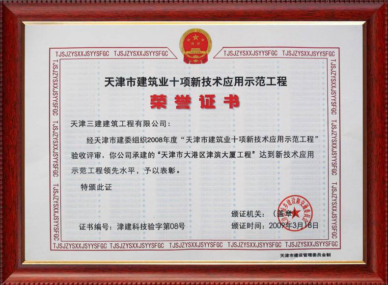 2009天津市大港區(qū)津?yàn)I大廈示范工程