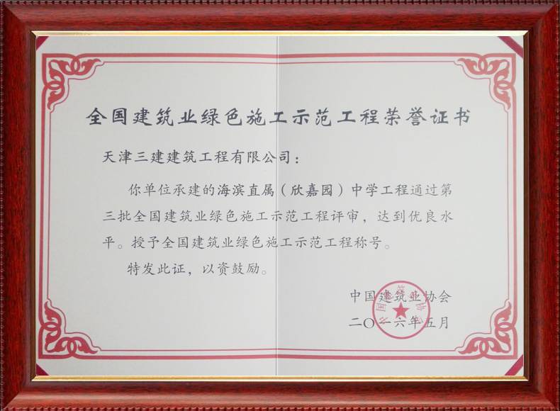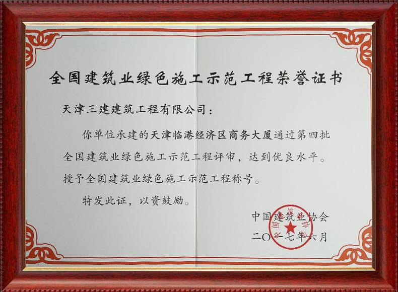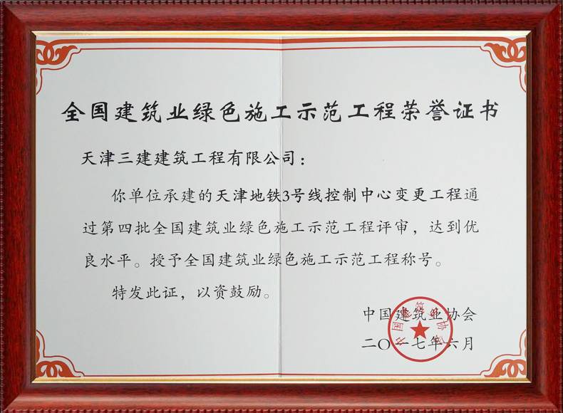 第三批全國綠色施工驗(yàn)收證書