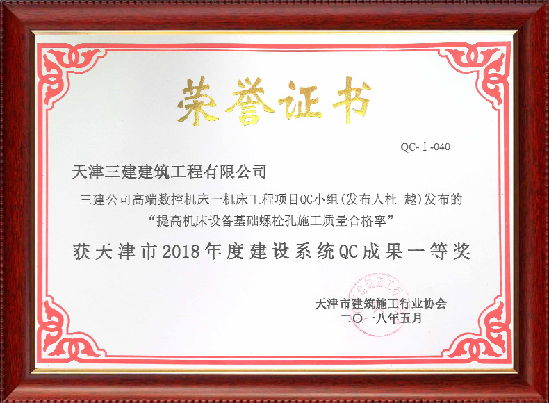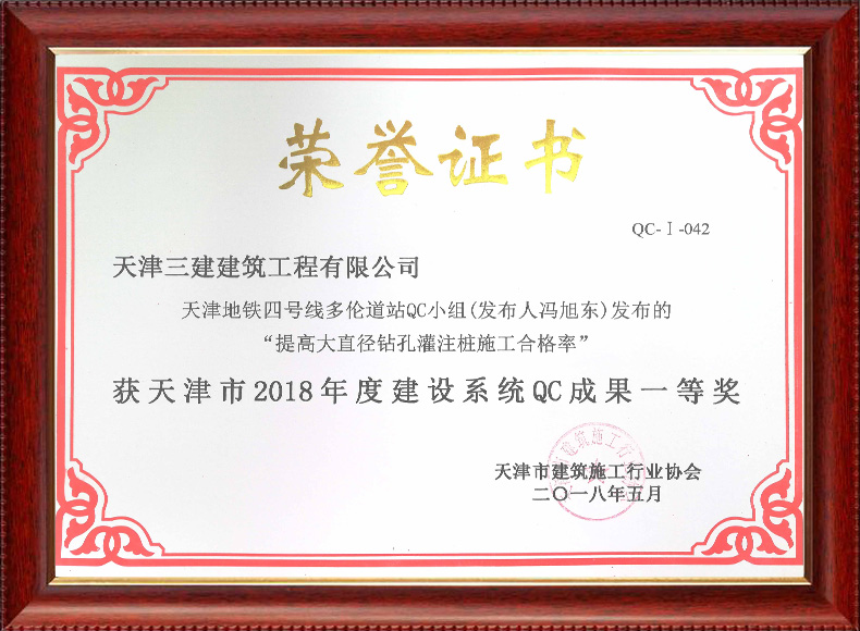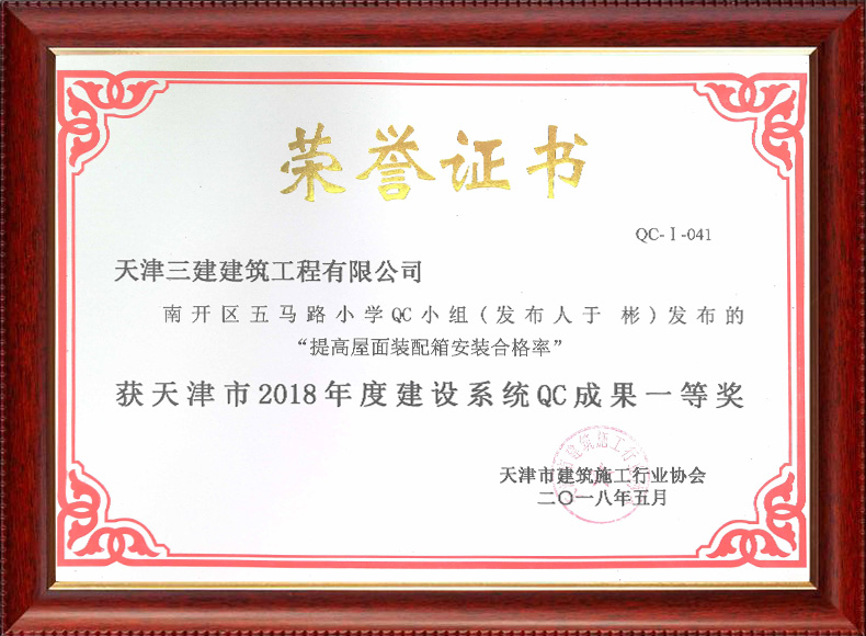 2019天津市質(zhì)量協(xié)會優(yōu)秀QC小組(濱五)